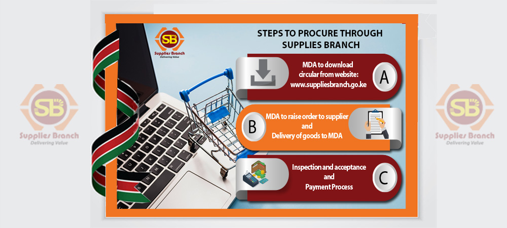Supplies Branch was initially established as a department of public works through Treasury Circular Ref.No.2012/57/02 of 19 January 1960. Its main objective was to procure common user items (CUIs) for the colonial government with an initial capital fund of Kshs.15 million. The fund was managed by the Permanent Secretary Ministry of Works for the purposes of procuring common stores, sourcing of term contracts, custody of furniture, and sourcing of fuel for government departments. Since inception, the Supplies Branch has been moved severally between three ministries; i.e. office of the President, Ministry of Finance and Ministry responsible for Public Works. Currently, the entity as spelt out in the executive order is domiciled in the Ministry of Transport, Infrastructure, Housing and Urban Development, under State Department of Public Works.
